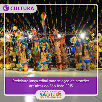 Interessados em participar do edital de seleção e contratação de atrações artísticas para os festivos juninos do ano de 2015, promovidos pela Prefeitura de São Luís, por meio da Fundação Municipal de Cultura (Func) poderão acessar a ficha de inscrição no edital disponibilizado no Portal da Prefeitura (www.saoluis.ma.gov.br).