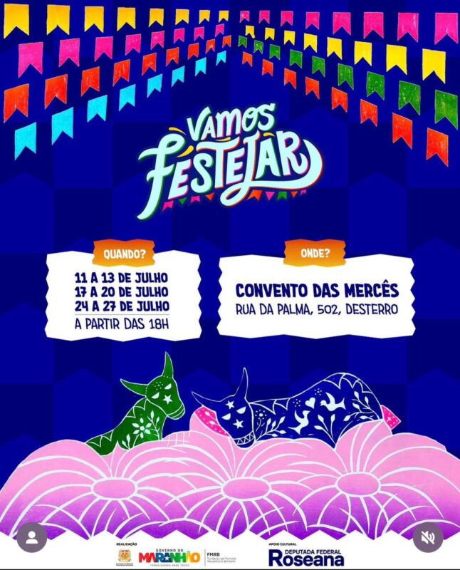 Gratuito e voltado para toda a família, o Vamos Festejar transforma o Convento das Mercês em um grande arraial de memórias, reafirmando o papel da FRMB, na difusão da arte e da cultura maranhense