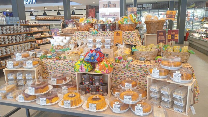 Logo na entrada, os clientes são envolvidos por cores vibrantes, aromas inconfundíveis e uma seleção de iguarias que remetem às festas mais queridas do Nordeste. Delícias doces e salgadas, muitas delas preparadas com receitas tradicionais que atravessaram gerações, compõem a ambientação especial montada em todas as unidades.