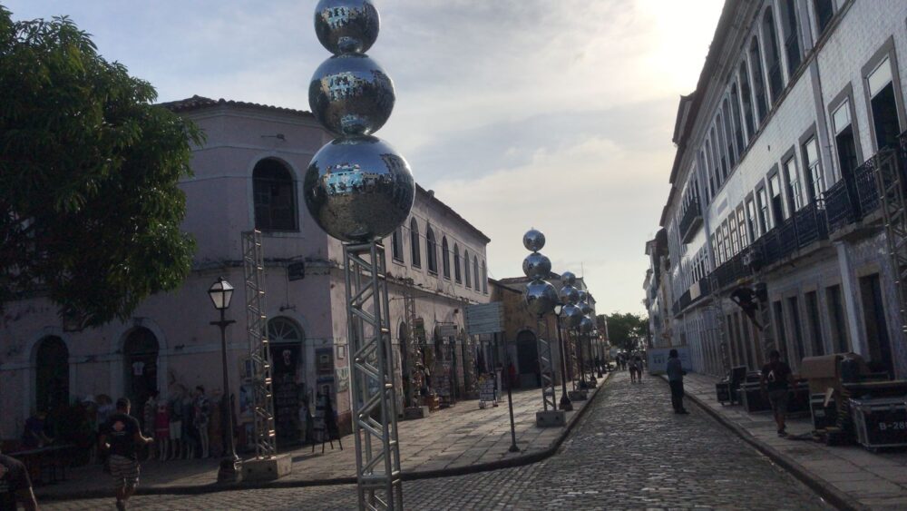 Globos espelhados, instalados na Rua Portugal para compor a apresentação das personalidades, proporcionarão efeito nos casarões e uma experiência única envolvendo luzes e artes cênicas.