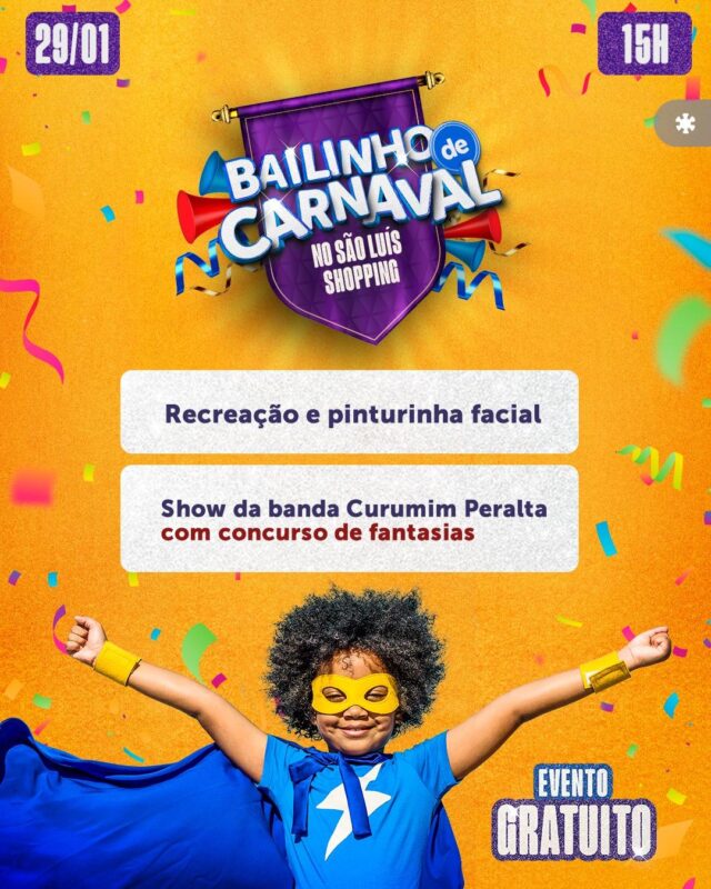 “O bailinho é uma iniciativa do São Luís Shopping para as crianças se divertirem com segurança neste período da festa mais popular brasileira. O evento promete muita animação para os pequenos foliões”, afirmou Igor Quartin, gerente de Marketing do shopping.