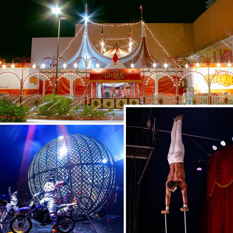 As apresentações de estreia ocorrerão na sexta-feira (10), às 20h, e no sábado (11) e domingo (12), em três horários: 16h, 18h30 e 20h30. Instalado no estacionamento do shopping, o circo oferece sessões de segunda a domingo, proporcionando experiências de entretenimento para toda a família.