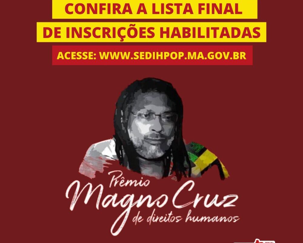 A Secretaria de Direitos Humanos e Participação Popular (Sedihpop) divulgou o resultado definitivo das inscrições aptas a concorrerem ao Prêmio Magno Cruz 2021. A lista completa está disponível no link https://sedihpop.ma.gov.br/consulta-publica/2021-10-14-premio-magno-cruz-ata-resultado-definitivo/.