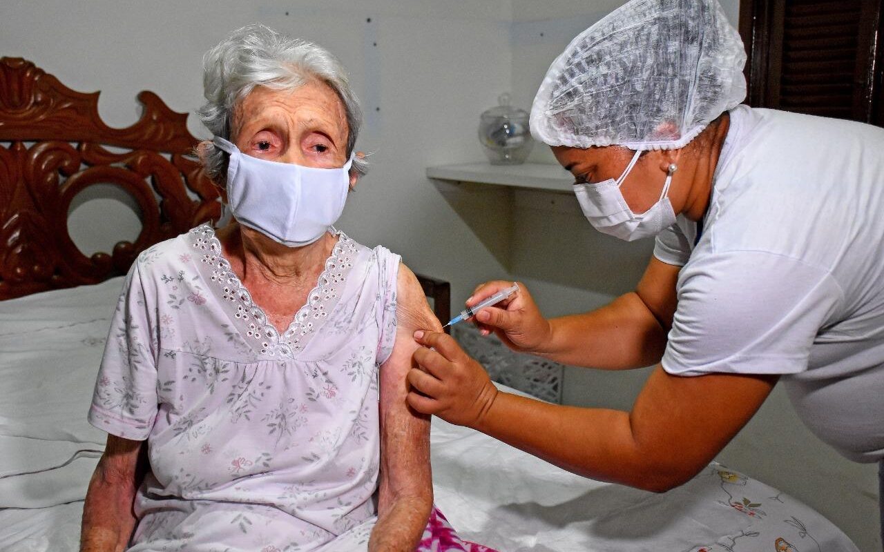 A vacina chegou, durante a semana, para a aposentada de 94 anos, Lurdes Santos Jacinto. A família recebeu, emocionada, a equipe de vacinadores. “Essa é uma ação muito importante da Prefeitura porque a minha tia não tem condição de sair de casa, por conta do Alzheimer, e precisava muito tomar a vacina que é uma dose de esperança para todos nós”, disse emocionada a tia da senhora Lurdes Jacinto.