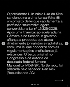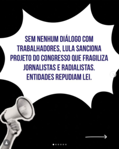 GeralSem nenhum diálogo com trabalhadores, Lula sanciona projeto do Congresso que fragiliza jornalistas e radialistas. Saiba mais! 09/01/202609/01/2026