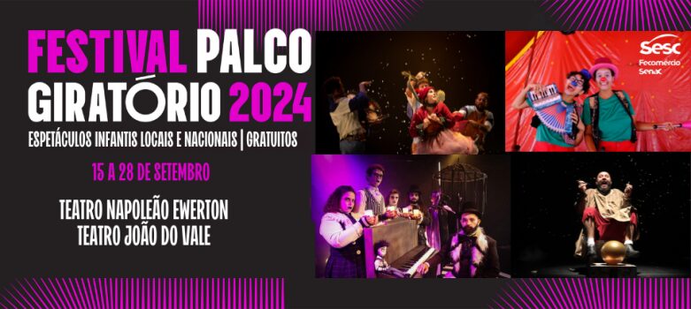 SÃO LUÍS – Uma oportunidade de divertimento, aprendizagem e vivência da infância. Assim foi pensada a programação infanto-juvenil do Festival Palco Giratório Sesc 2024 no Maranhão, que recebe o projeto nesse formato pela primeira vez no estado – com atrações gratuitas de 13 a 28 de setembro, reunindo artistas locais e nacionais nas cidades de São Luís, Caxias e Itapecuru-Mirim.