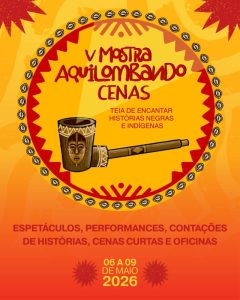 A V Mostra Aquilombando Cenas – I Teia de Encantar Histórias Negras e Indígenas acontece de 06 a 09 de maio, em São Luís e no município de São José de Ribamar (MA), reunindo artistas negros e indígenas em uma programação gratuita voltada às artes cênicas. O projeto, criado em 2020, chega à sua quinta edição ampliando sua atuação com a realização do primeiro encontro de contadores de histórias negros e indígenas no Maranhão. A programação inclui espetáculos teatrais, performances, contações de histórias, cenas curtas, oficinas e rodas de conversa, ocupando o Centro Histórico de São Luís, escolas públicas e o Território Indígena Tremembé.